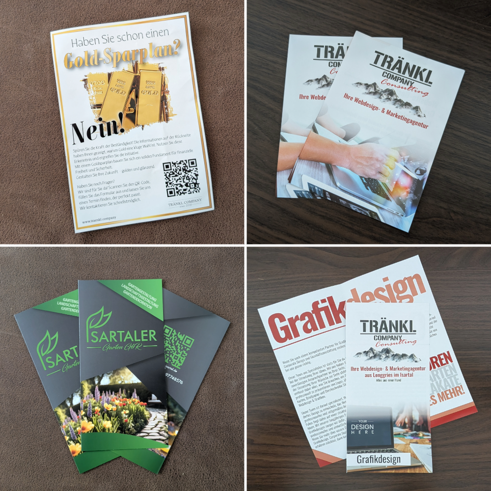 Warum Tränkl Consulting? Ein Flyer hat nur wenige Sekunden Zeit, um zu überzeugen. Wir kombinieren punktgenaues Design mit klarem Call-to-Action.