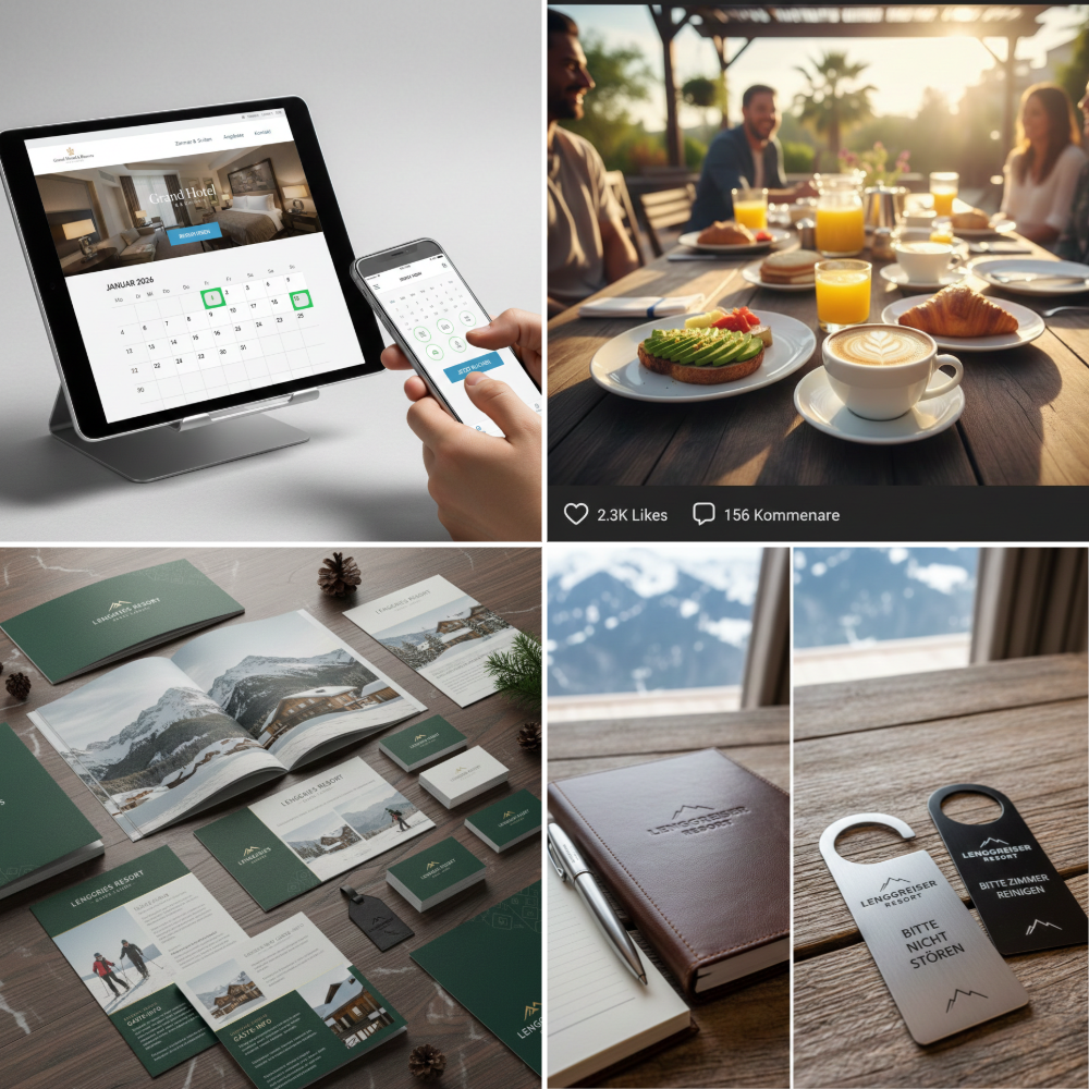 Gäste-Info: Edle Broschüren, Flyer und individualisierte Werbeartikel für einen bleibenden Eindruck.