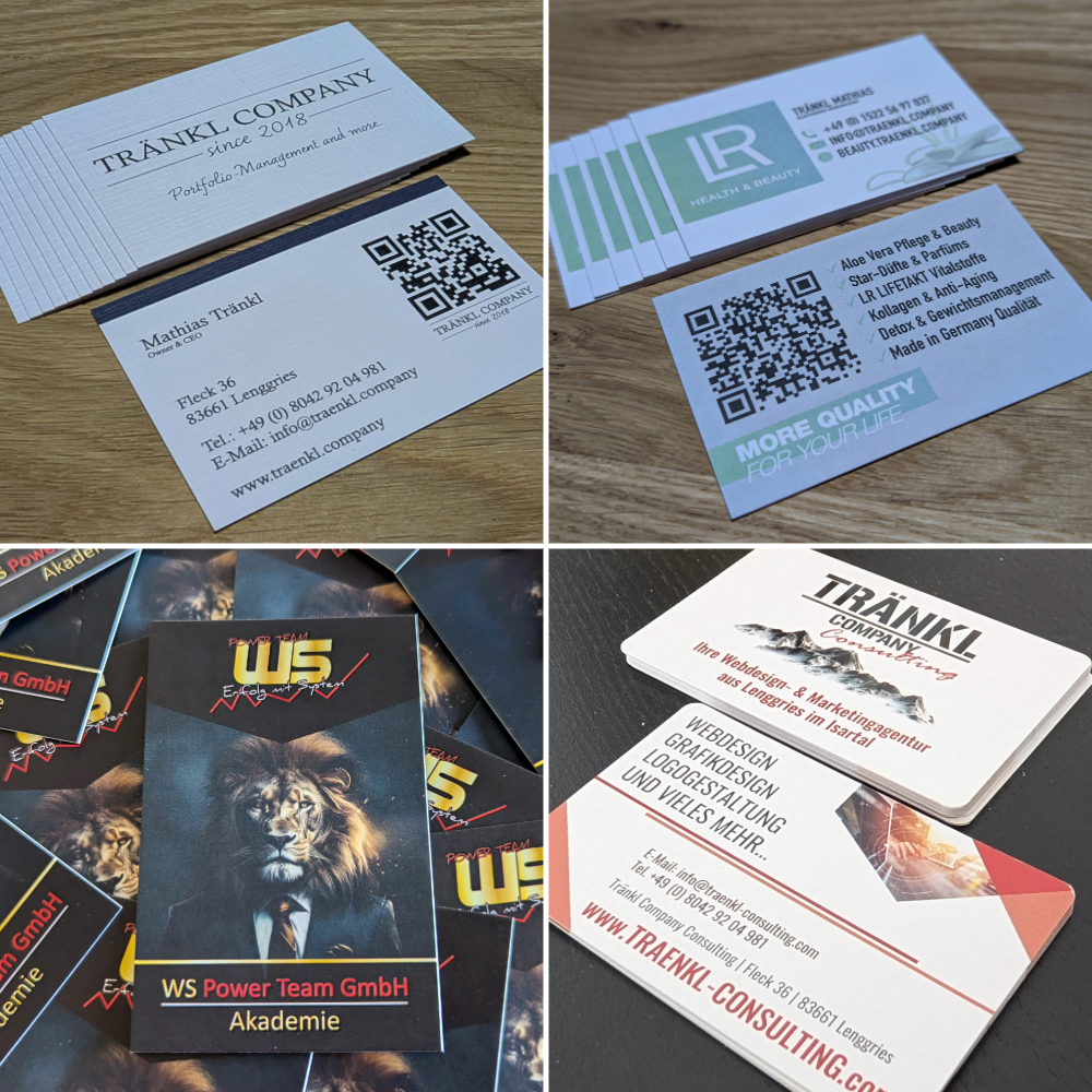 Formate: Standard 85 x 55 mm (Hoch/Quer) oder als praktische Klappvisitenkarte.